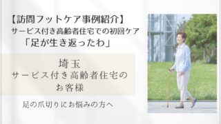 あしよし お客様 「足が生き返ったわ」サービス付き高齢者住宅での初回ケア サービス付き高齢者住宅にお住まいの70代女性の訪問フットケア事例。スタッフの勧めで初めて受けたケアに「足が生き返ったわ」と笑顔の声。巻き爪や肥厚爪に悩む方に。 2025.10.13 あしよし お客様お知らせ雑記