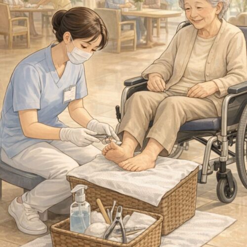 フットケアは転倒予防にもつながり、利用者様の満足度アップに直結します。