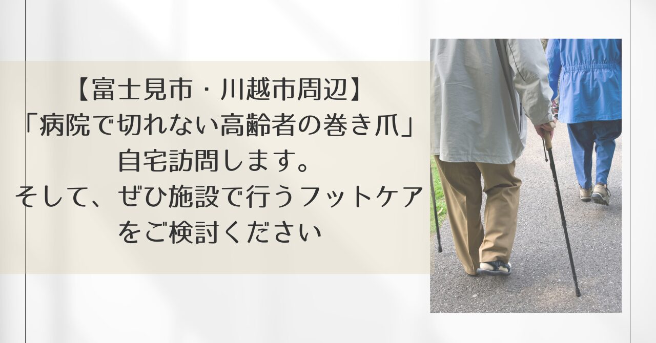 富士見市、ふじみ野市、三芳町、川越市でフットケアができる場所をお探しの方は、ぜひ「あしよし」にお任せください!あなたの足元を、ピカピカに、そして元気に歩けるようにサポートさせていただきます。