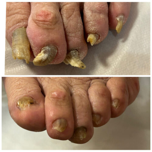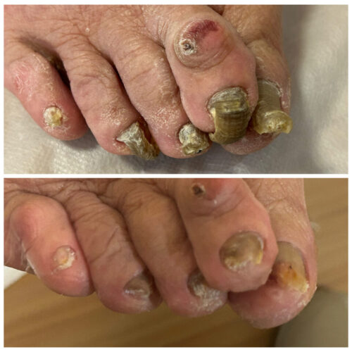 実際に足を拝見すると、少なくとも3年以上、爪が切られていない状態でした。